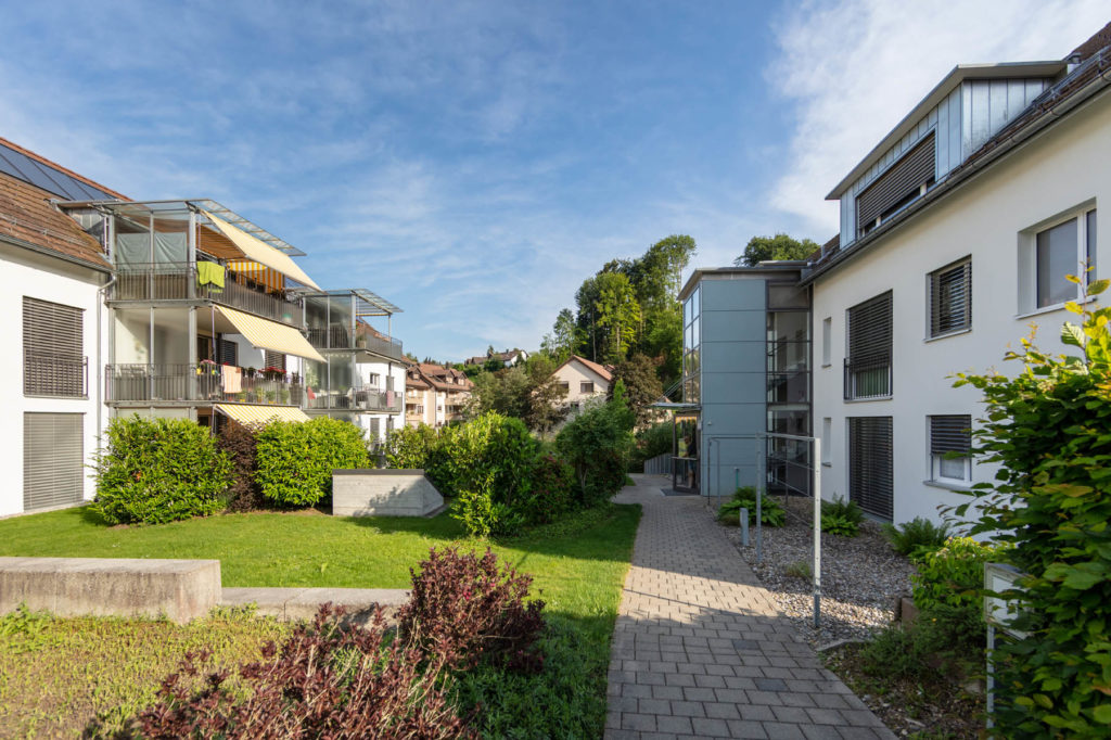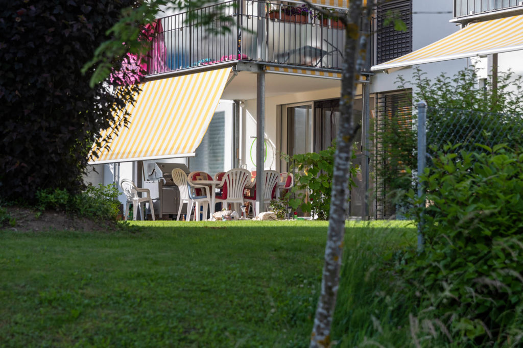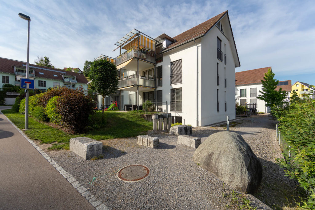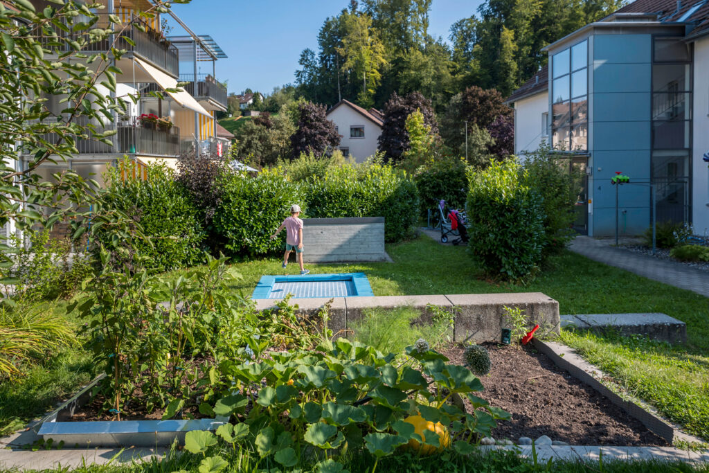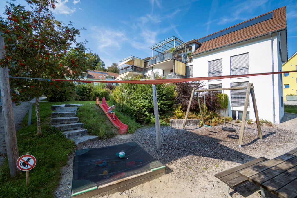 Der Spaghettitopf köchelt in der offenen Küche vor sich hin. Papi füttert noch schnell den Waschturm im Bad und befreit den schönen Buchenparkett von den Schuhabdrücken der Kinder. Unsere 2007 erbaute Siedlung Haspel in Kollbrunn ist Ausgangspunkt für den ganz normalen Familienalltag – und perfekt gelegen für alle Ein- und Zweipersonen-Haushalte, die es ländlich mögen, aber alle Vorteile einer naheliegenden Stadt nicht missen möchten. Noch kurz in den Tanzkurs nach Winterthur oder auf eine Bike-Tour über die Hügel des idyllischen Tösstals? In zwei Minuten erreicht man mit Velo den Bahnhof, in einer Viertelstunde mit dem Zug das Winterthurer Stadtzentrum – und von dort geht es ohne Umsteigen weiter nach Zürich. Die Primarschule und der Coop liegen in Gehdistanz. Für einen nachbarschaftlichen Plausch oder private Geburtstagsfeste gibt es einen Siedlungsraum.